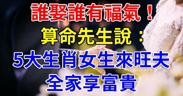 心靈成長 誰娶誰有福氣!算命先生說:5大生肖女生來旺夫,全家享富貴 Sep 18, 2023