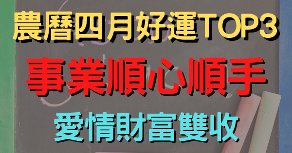 農曆四月好運TOP3 事業順心順手、愛情財富雙收