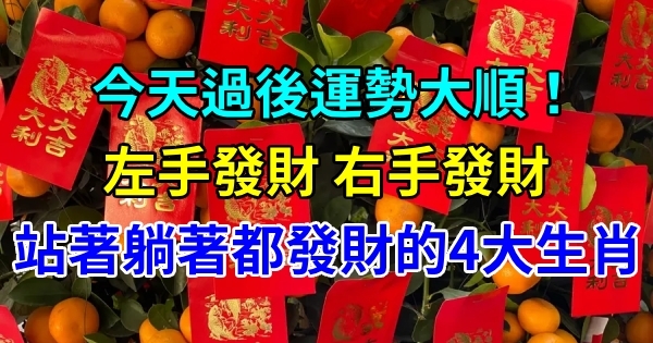 許多人期待自己能左右逢源、財運滾滾來,有4生肖在年底前運勢旺到翻...